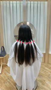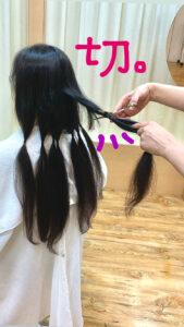 本日のお客様は、今回でヘアドネーション4回目だそうです。